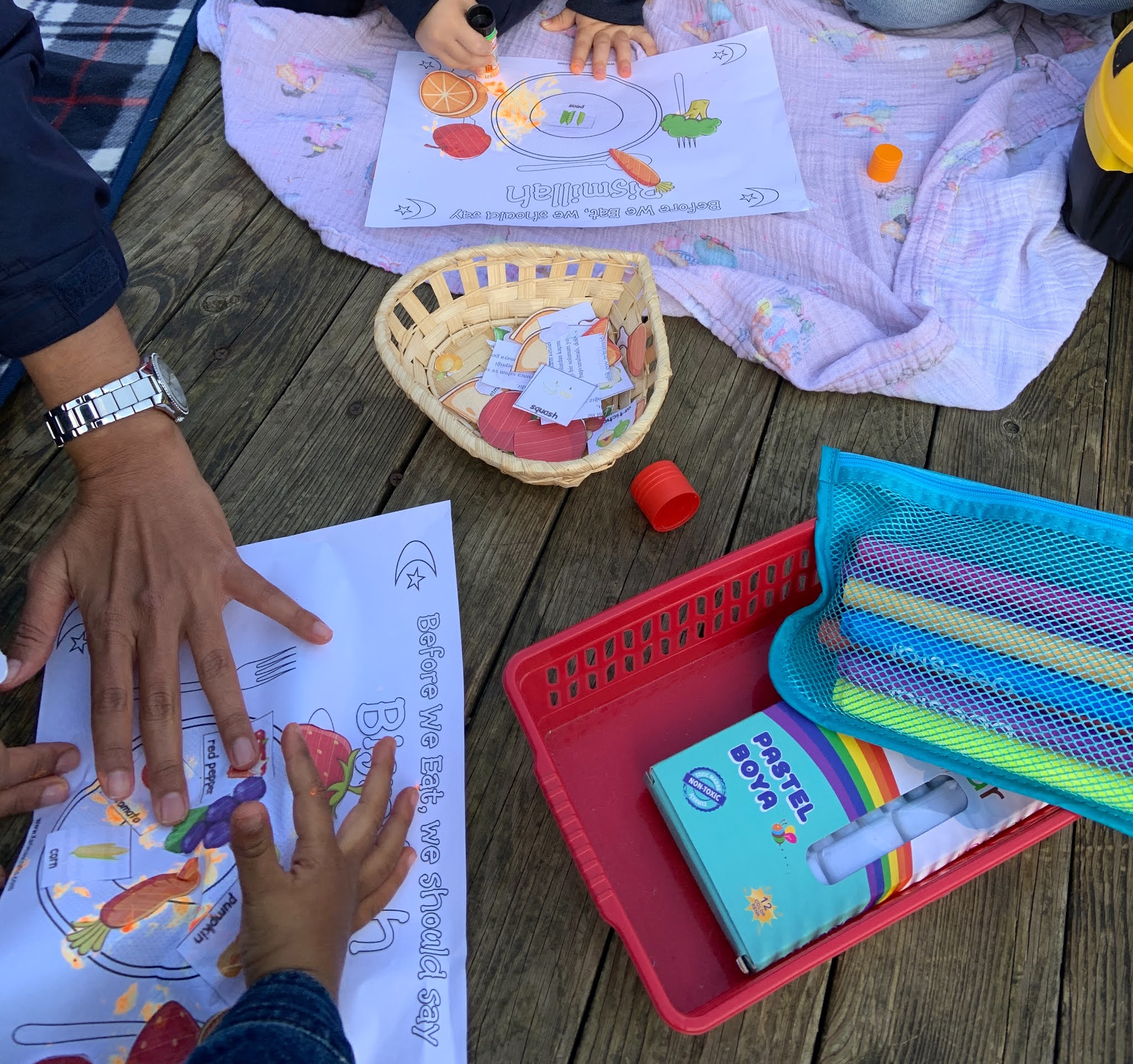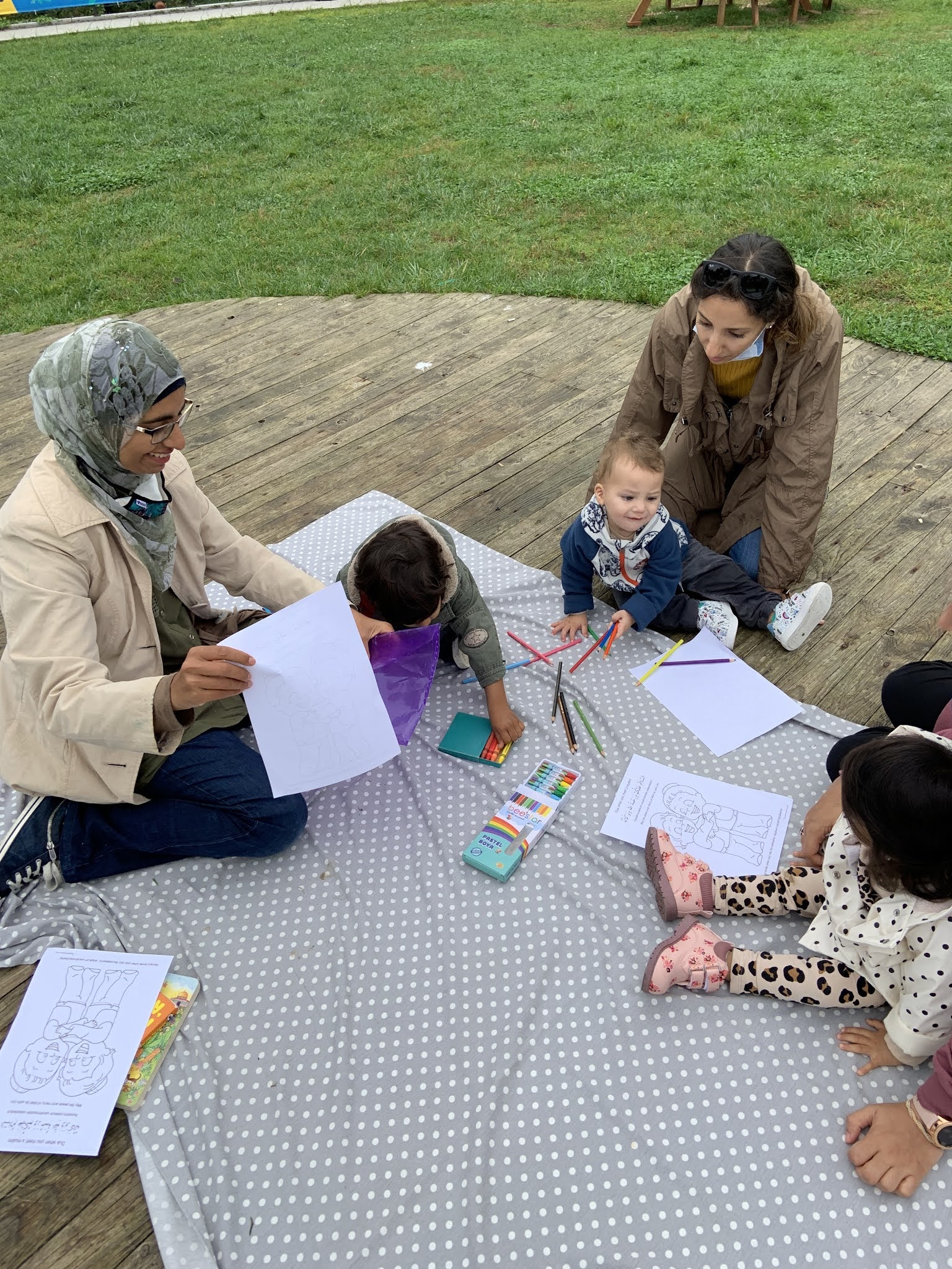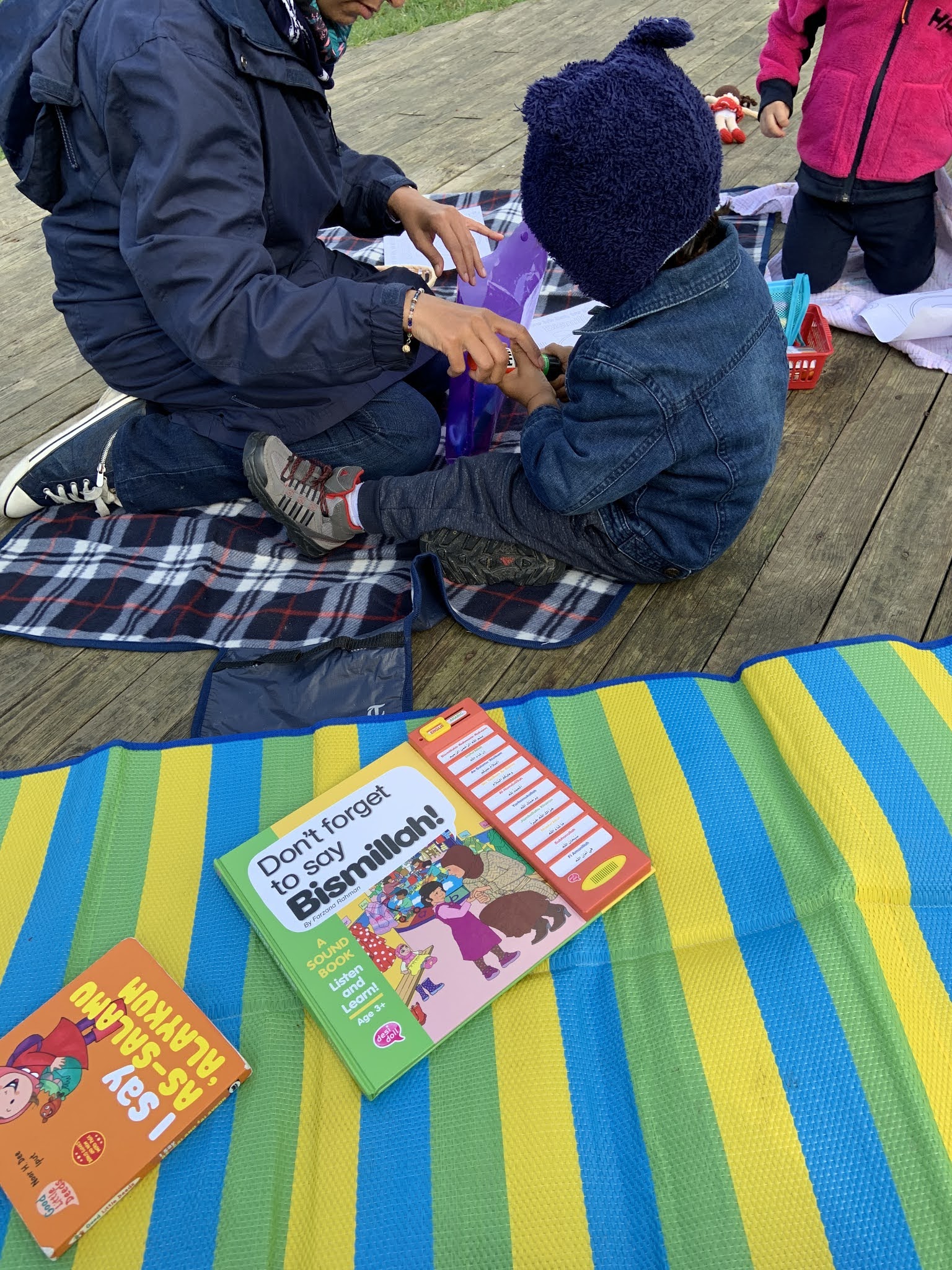 The aim is to introduce little kids to key islamic concepts and morals in a fun, social context. We meet outdoors at a local park and I bring along books, art supplies and snacks.