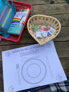 This is a great beginner activity but of course the main learning comes from daily practice – so remembering to say bismillah when beginning to eat, changing clothes, putting on shoes, leaving the house – and every little or big action.